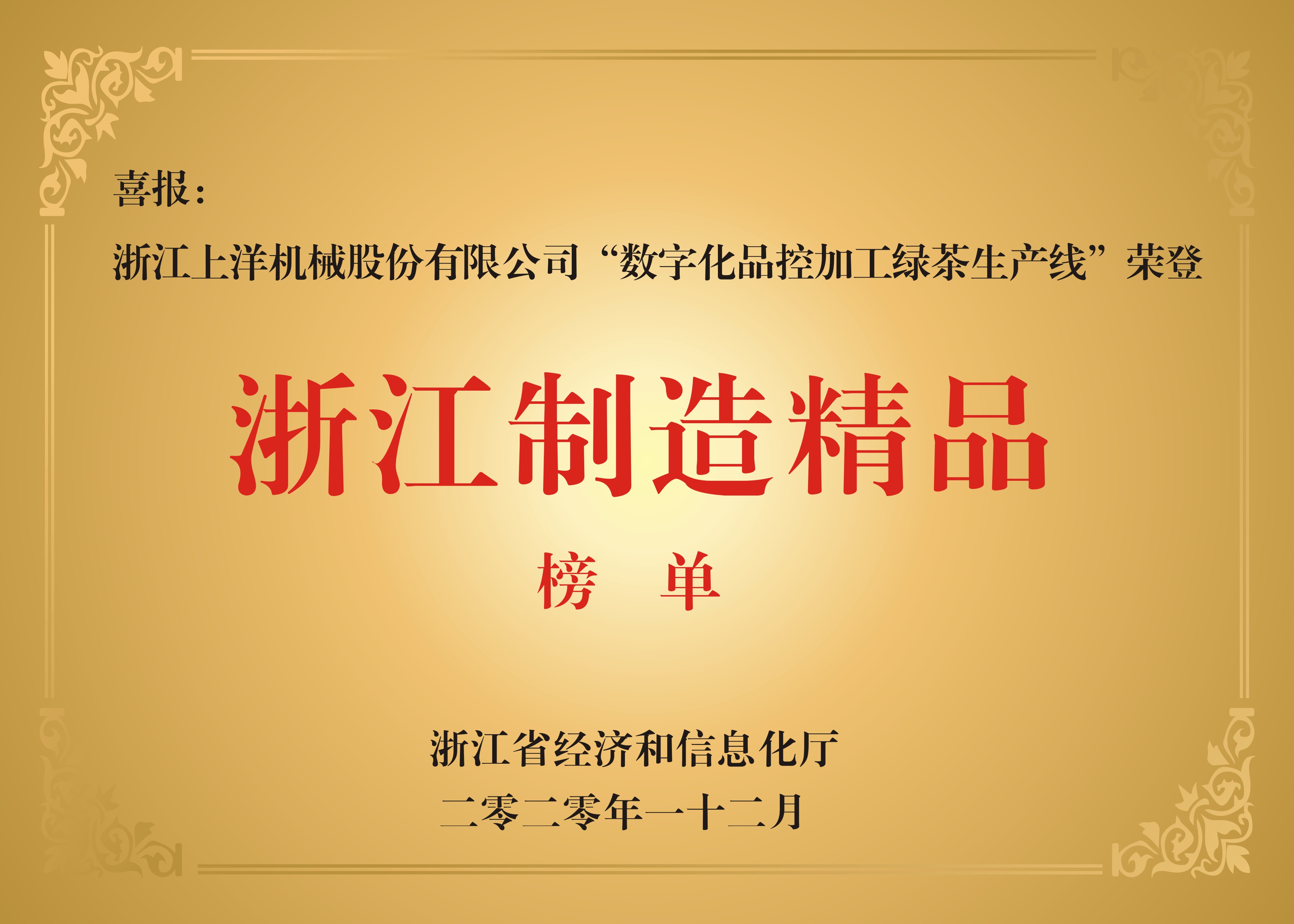 2020年數(shù)字化品控綠茶生產線榮登浙江制造精品榜單