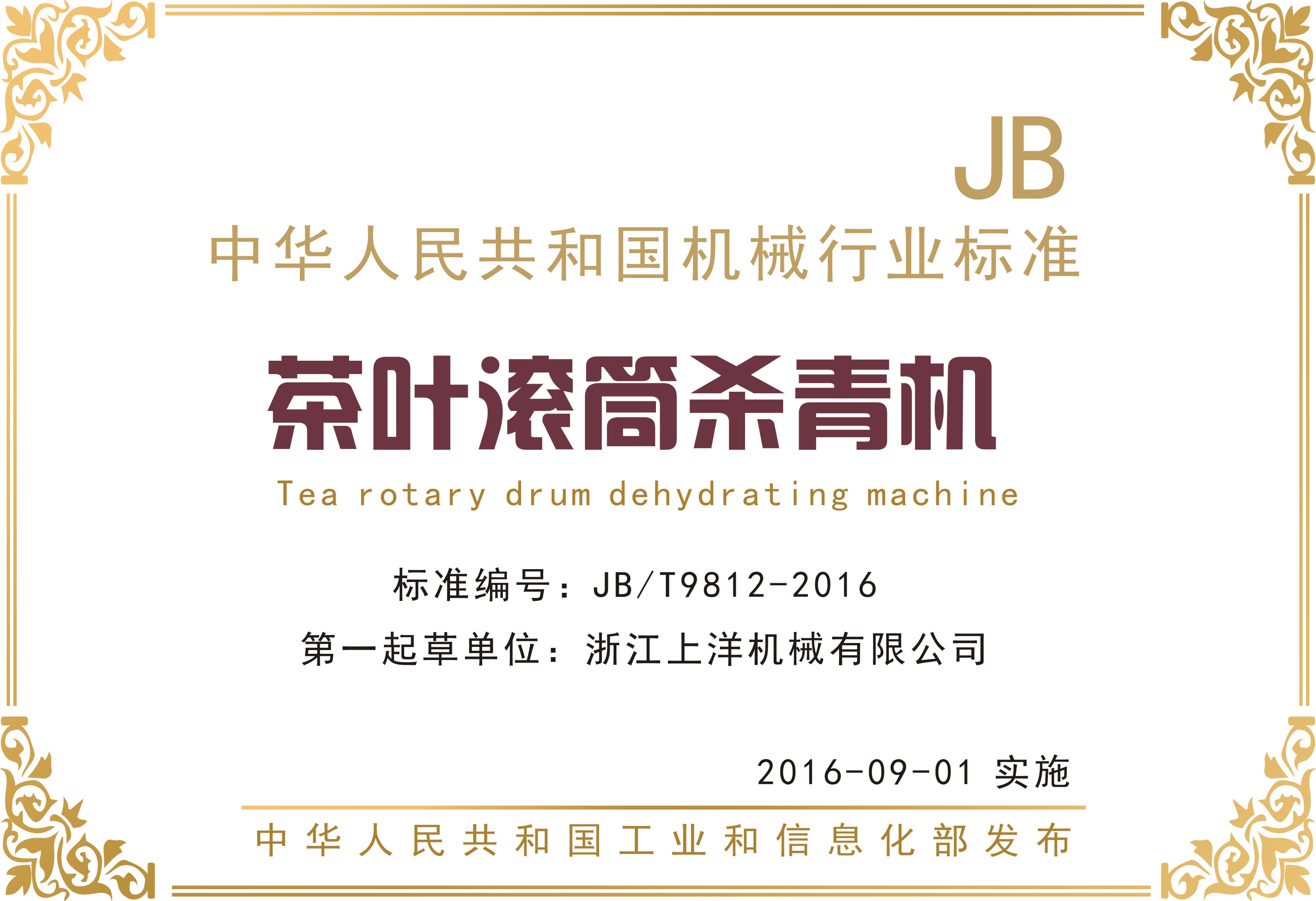 行業(yè)標準2、茶葉滾筒殺青機-第一起草單位
