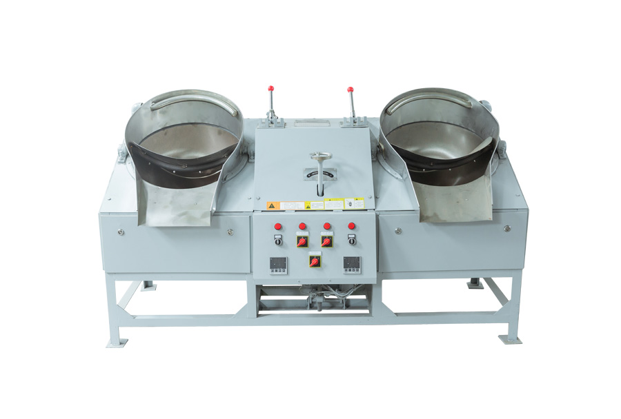 (2)、雙鍋曲毫炒干機(jī)適用于各類卷曲型、球型名優(yōu)茶的做型炒制作業(yè)。目前市場上有50、60兩種鑄鐵鍋和壓制鍋兩種,壓制鍋外形更好,但在加熱后易變形,引起抄板和鍋?zhàn)涌ㄋ阑蜷g隙變大,從而增加碎茶或炒制茶葉外形不緊,鑄鐵鍋不存在這種現(xiàn)象,我公司一直使用鑄鐵鍋,50型采用掛擋調(diào)速、60型采用變頻調(diào)速。